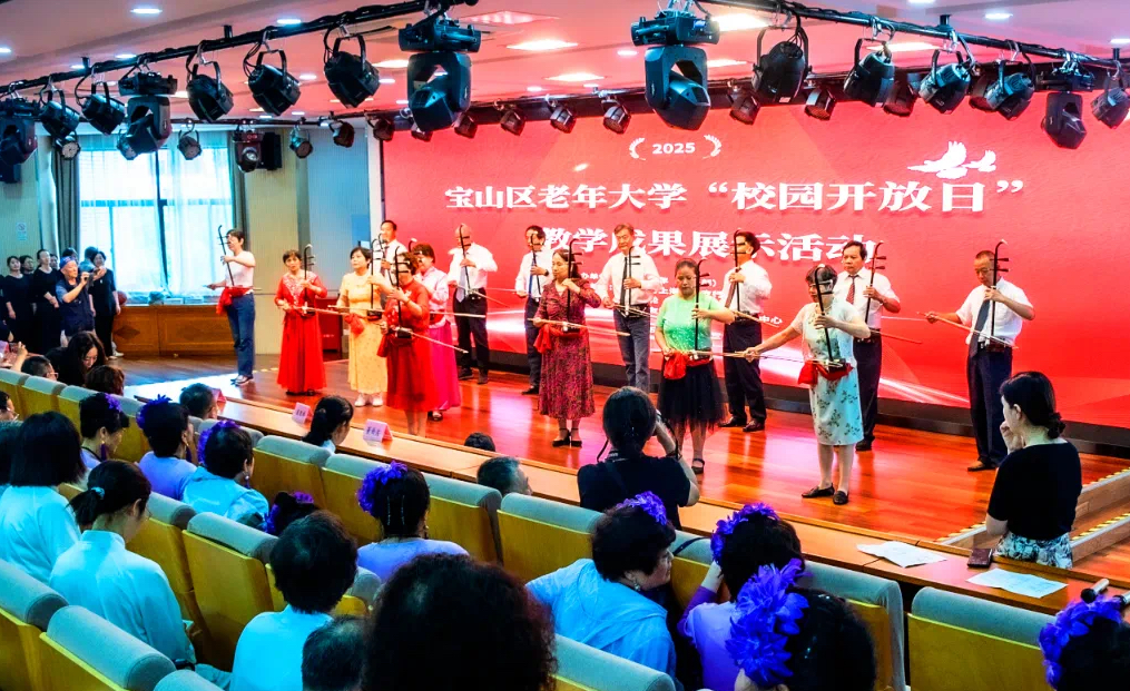 在宝山区老年大学,“党建引领、文化聚力、科技赋能、志愿先行”的老年教育服务生态,让银发群体在学习中传承文化、服务社会、绽放光彩,为构建老有所学、老有所为、老有所乐的老年友好型社会不断创新实践。